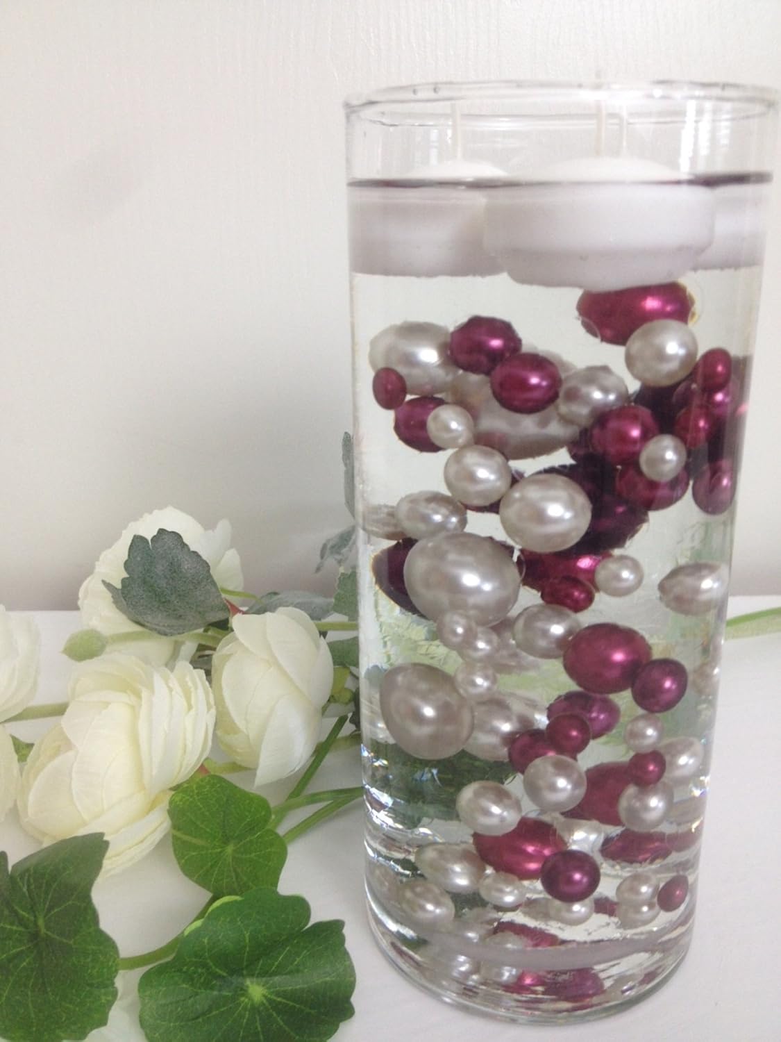 80 Burgundy Light Silver Pearls Vase Filler Pearls For Floating Pearl Centerpieces Jumbo Mix Size Pearls Transparent Gel Beads Required To