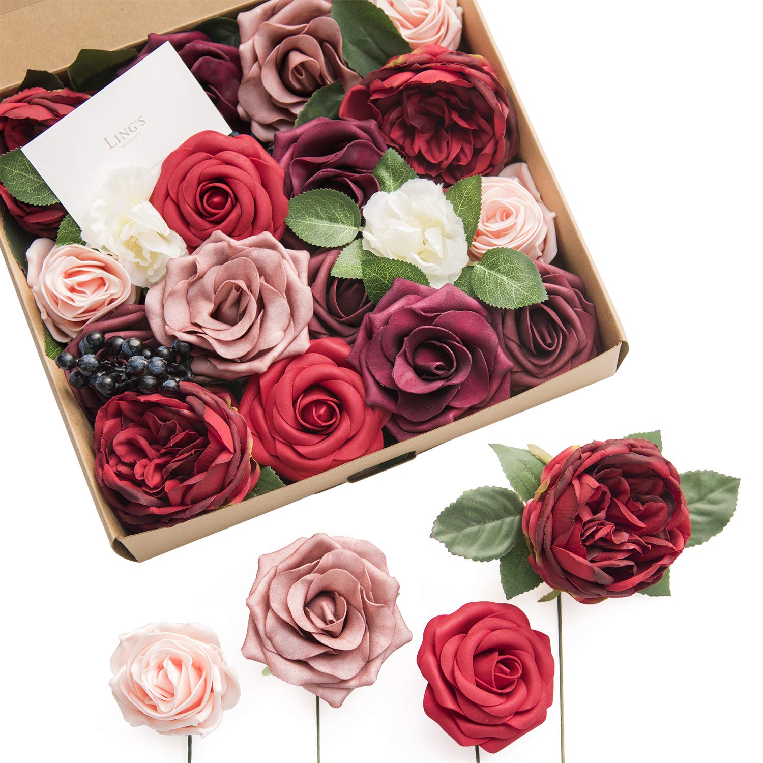 Ling S Moment Artificial Flowers Combo For Diy Wedding Bouquets Flower Arrangements Table Centerpieces Decorations Moody Burgundy
