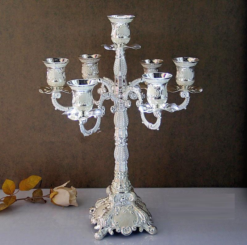 7 Branch Antique Silver Plated Large Decorative Lanterns Tall Candle Holders For Wedding Centerpieces Candlestick Gbn 756