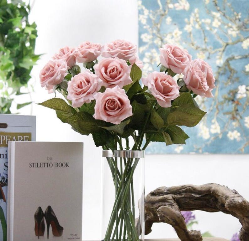 Rose Gold Flowers Soft Pink Wedding Flowers Real Touch Roses 10 For Wedding Centerpieces Floral Decor Reception Table Flowers Hd1811 04