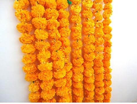Craffair Artificial Marigold Flower Strings Orange Color Party Backdrop Party Decoration Indian Theme Party Decor Photo Prop Wedding Decorations