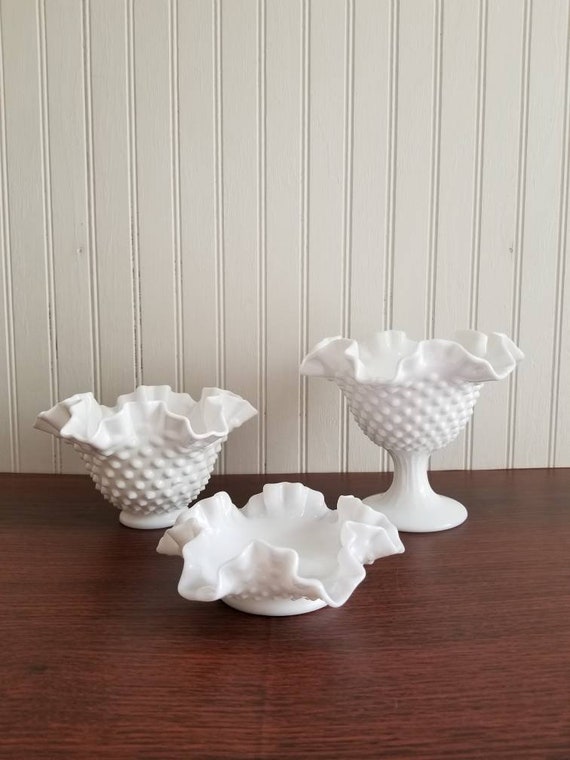 Vintage Milk Glass Hobnail Set Wedding Decoration Pedestal Dish Cottage Decor White Glass Rustic Wedding Farmhouse Decor Vintage Wedding