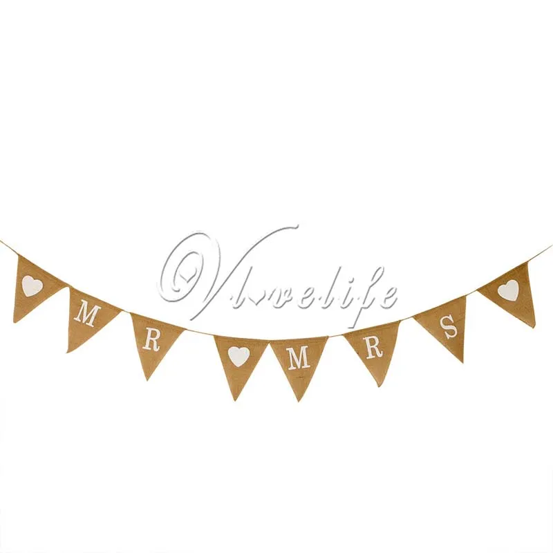 Us 4 96 31 Off 1 Piece Burlap Banner Mr Mrs Pattern Bunting Banner Triangular Flag For Wedding Event Party Decor Party Favors In Banners Streamers