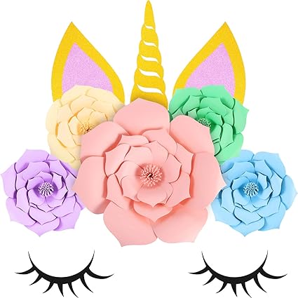 Jetec Unicorn Shape Backdrop Party Favor Paper Flowers Wall Decor With Glitter Large Horn Ear Eyelashes For Girl Birthday Wedding Party Baby Shower