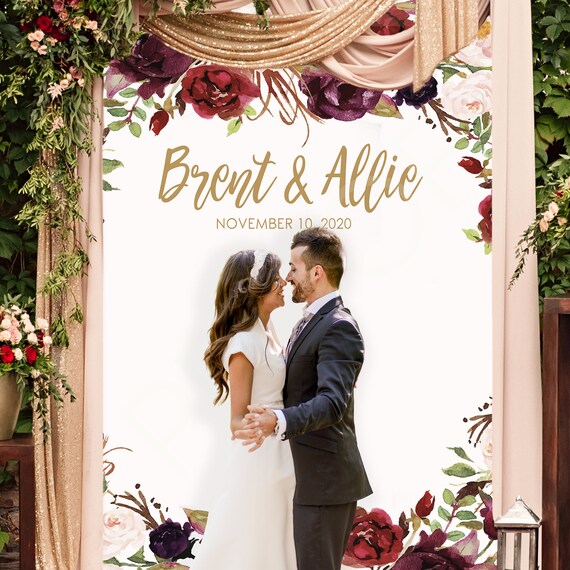 Bridal Shower Backdrop Marsala Roses Custom Bridal Banner Bridal Shower Party Banner Bridal Shower Backdrop Wedding Backdrop Decor