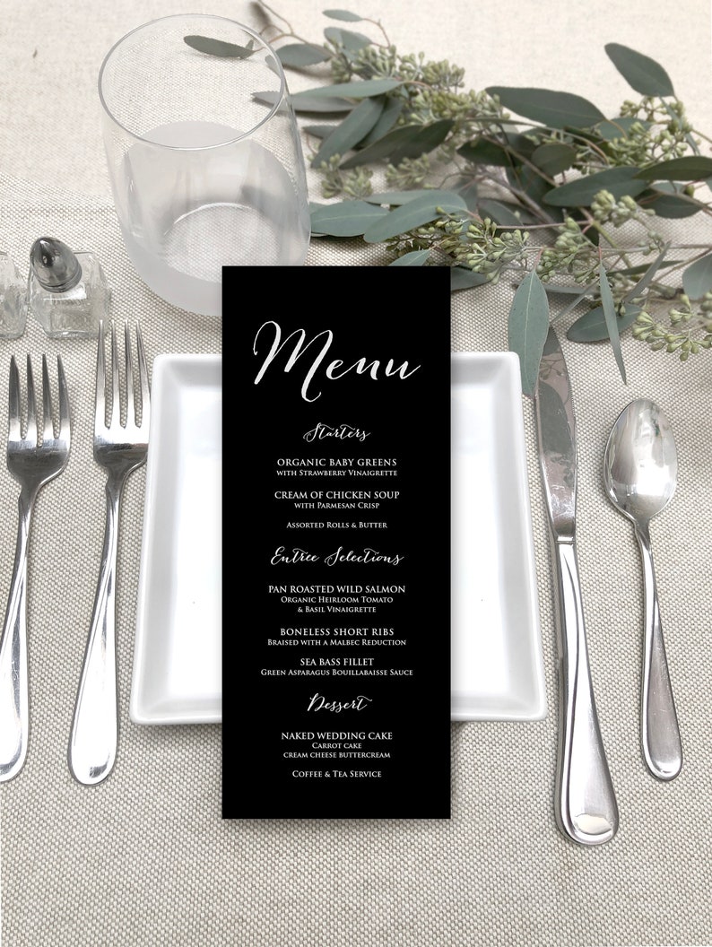 Black And White Wedding Menu Card Modern White Printing Wedding Menu Cards Midnight Black And White