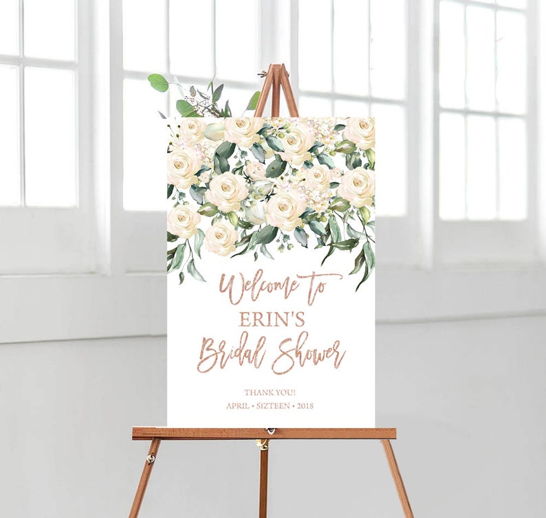 Bridal Shower Decorations Blush White Roses And Rose Gold Decor Welcome Sign Banner Decoration White Rose Gold Party Wedding Sign Wedds12