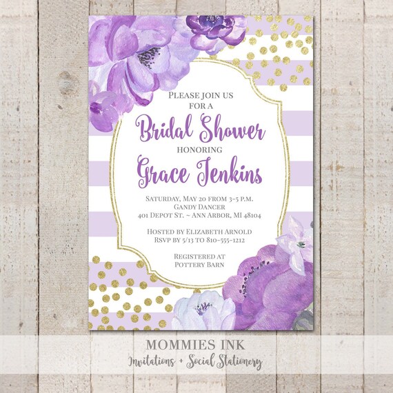 Lavender And Gold Bridal Shower Invitation Shower Invite