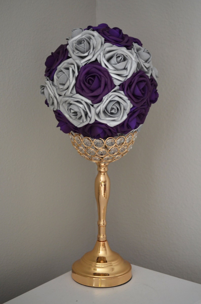 Eggplant Silver Flower Ball Wedding Centerpiece Kissing Ball Pomander Wedding Decor Sweetheart Table Pick Your Size