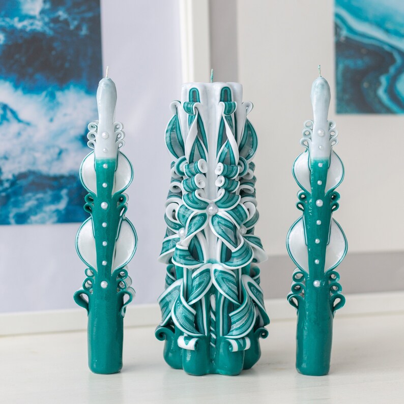 Emerald Candles Aquamarine Unity Candle Wedding Candle Set Unity Candlewedding Emerald Decor