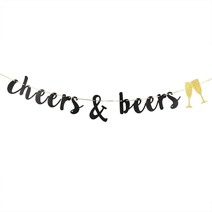 Cheers Beers Banner Black Glitter Sign Birthday Wedding Bachelorette Bridal Shower Engagement Party Decorations Supplies