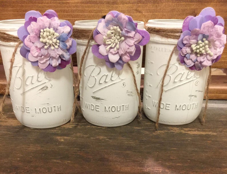 Set Of 3 Rustic Bridal Shower Decorations Lavender Wedding Centerpieces