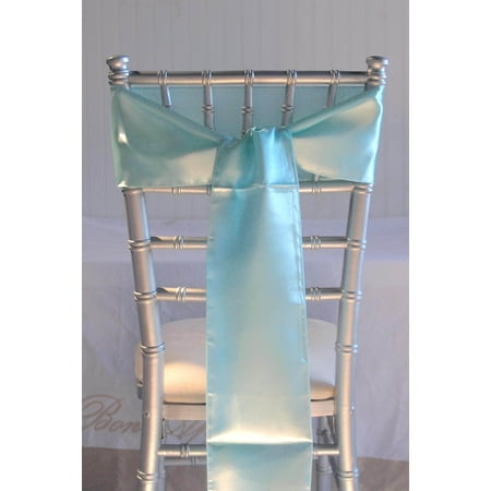 Aqua Satin Chair Sash Pack Of 10 Piece 6 Inches X 106 Inches