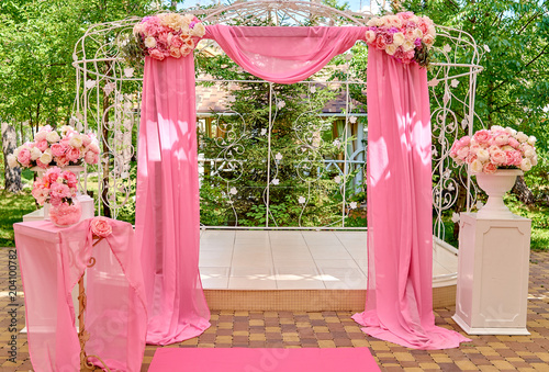Place For Wedding Ceremony In Pink Color With Wedding Arch