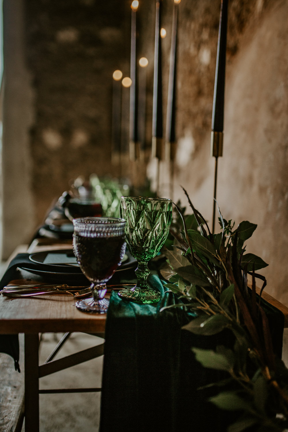 Forest Green Black Rustic Barn Dark Decadent Wedding