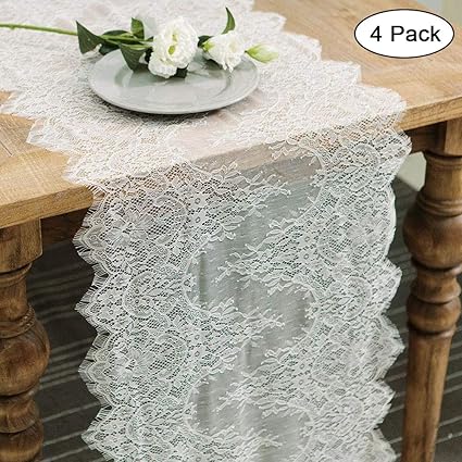 4pcs Lace Table Runner 14 X 120 Inch For Rustic Boho Wedding Decorations Baby Bridal Shower Decor White Classy Vintage Rose Embroidered Table Runner