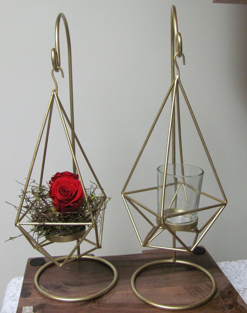 Wedding Centerpiece Vases 2 Gold Wire Hanging Centerpieces Gold Geometric Hanging Table Decorations Add Your Own Flowers Etc