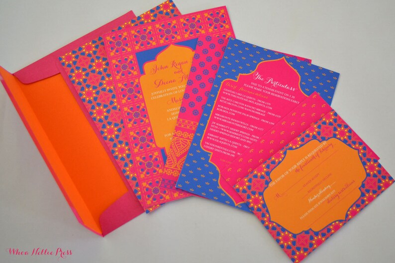 Moroccan Wedding Invitations Arabian Nights Boho Wedding Colorful Asian Wedding Indian Theme Morocco Party Invitations Hot Pink