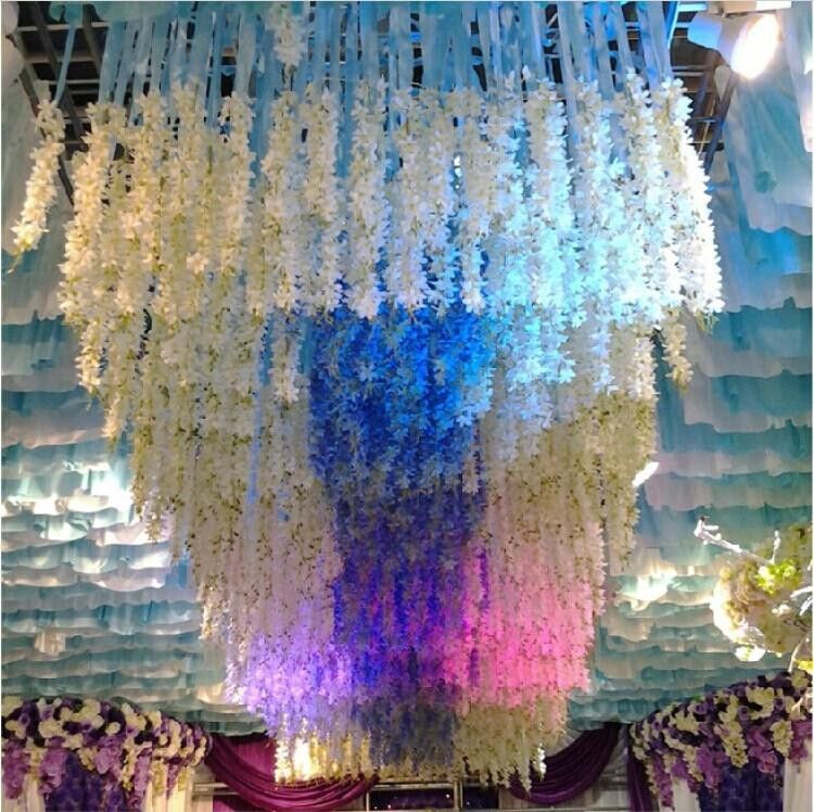 2015 New Arrival Elegant White Artificial Hanging Orchids Plants Fake Silk Flower Vine For Wedding Backdrop Party Decoration Supplies