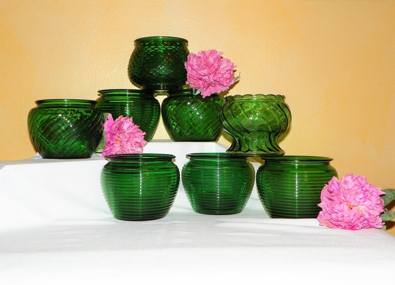 Emerald Green Planters Set Of 8 Matching Or Mixed Styles Emerald Green Glass Flower Pots Just Add Potted Flowers Centerpieces Herbs