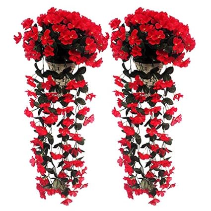 Meitan Artificial Violet Hanging Flower Silk Violet Flower Garland Hanging Basket Decorative Plant Home Outdoor Wedding Arch Garden Wall Decor 2pcs