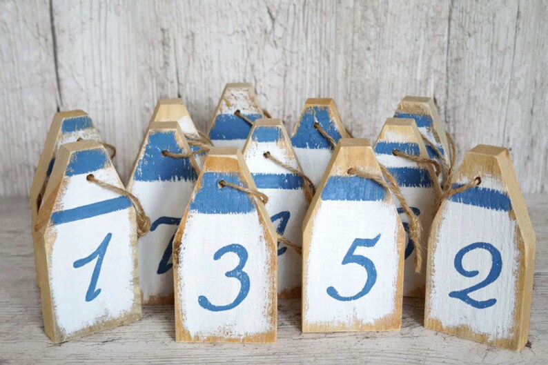 Wooden Table Numbers Nautical Wedding Decor Wood Buoys Wedding Table Decor Beach Wedding Blue Slate Custom Colors