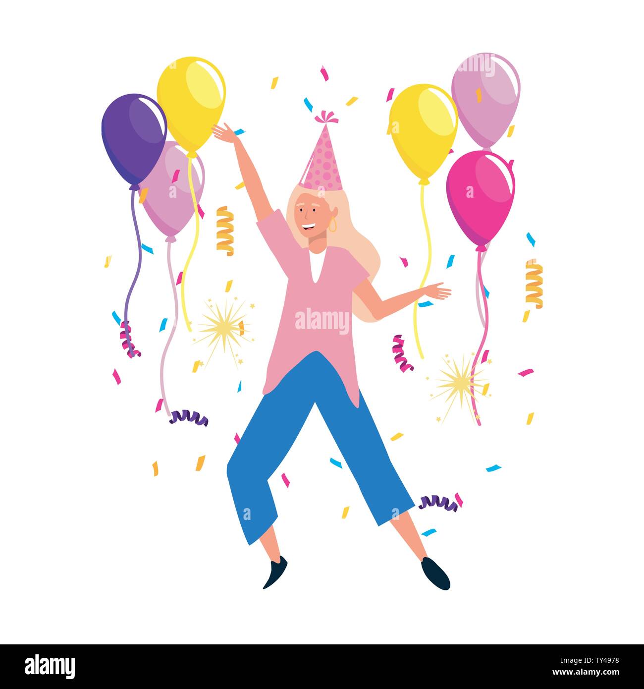 Woman Cartoon In A Party Design Happy Birthday Celebration