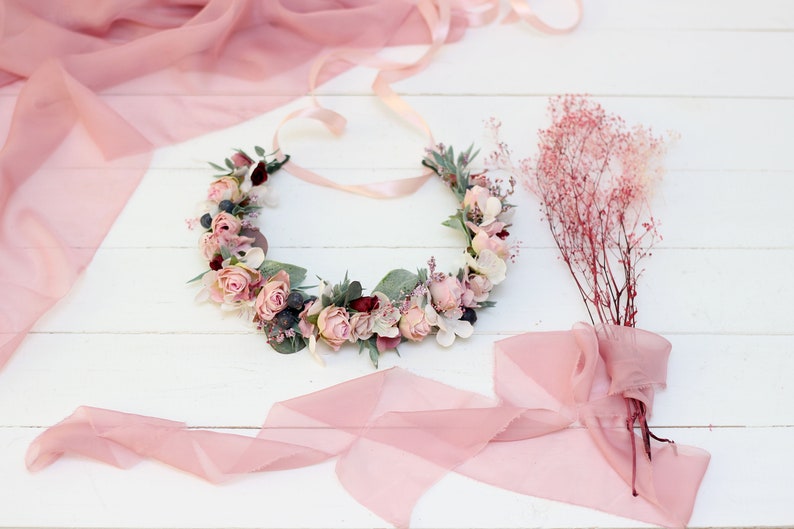 Blush Pink Burgundy Flower Crown Bridal Floral Garland Headpiece Bridal Accessory Outdoor Wedding Maternity Crown Bridesmaid Crown