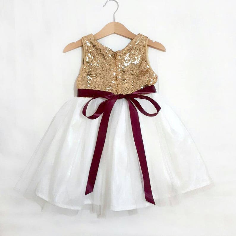 Gold Burgundy Flower Girl Dress With White Or Ivory Tulle Skirt Burgundy Wedding Theme Girls Dress