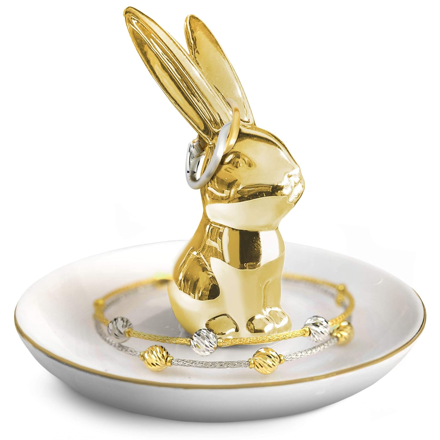 Ceramic Bunny Rabbit Ring Decorative Holder Gold White Ring Bracelet Jewelry Trinket Tray Dish Great For Wedding Ring Earrings Diamond Ring