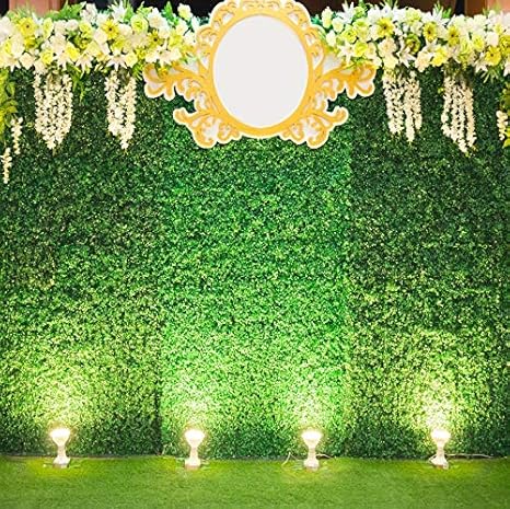 Baocicco 8x8ft Luxury Indoors Wedding Stage Decoration Backdrop Natural Green Grass Lawn Stage Lamp Flake Flower Decorations Background Wedding