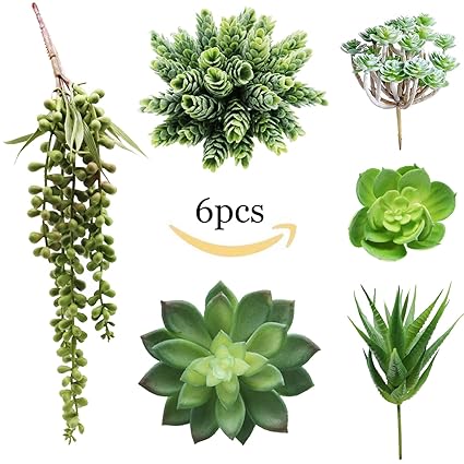 Jomass 6 Pcs Unpotted Fake Succulents Assorted Faux Succulent Green Artificial Hanging Succulents Textured Faux Succulent Pick Hanging String Of