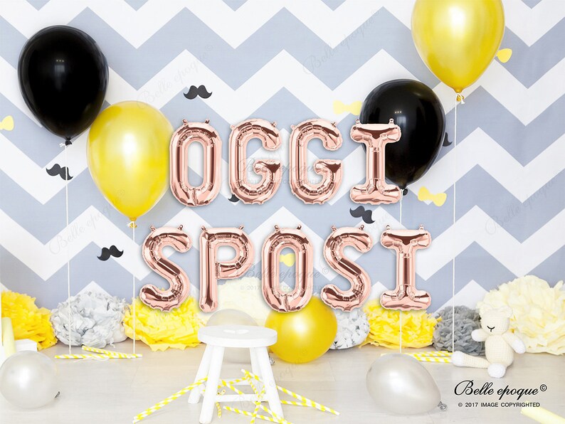 Oggi Sposi Rose Gold Balloons Engaged Gold Silver Letters Banner Balloon Tassel Tail Garland Balloon Just Married Bride Team