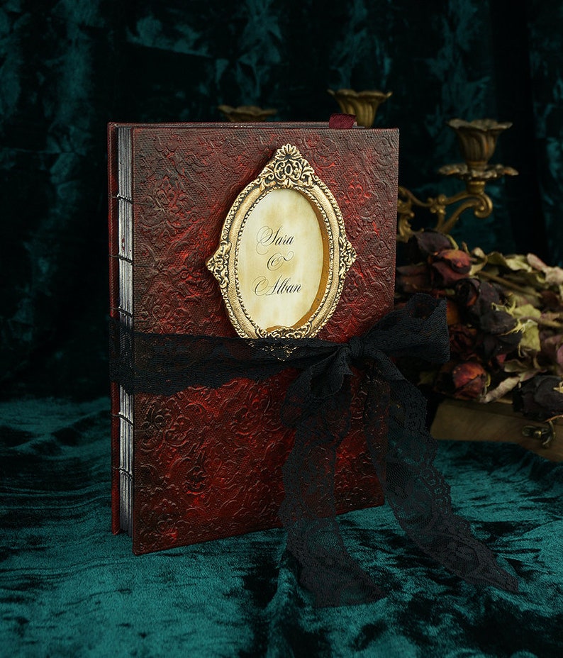 Gothic Wedding Guest Book Burgundy Black And Gold Photo Booth Album Shabby Chic Wedding Guest Book Halloween Wedding Guest Book
