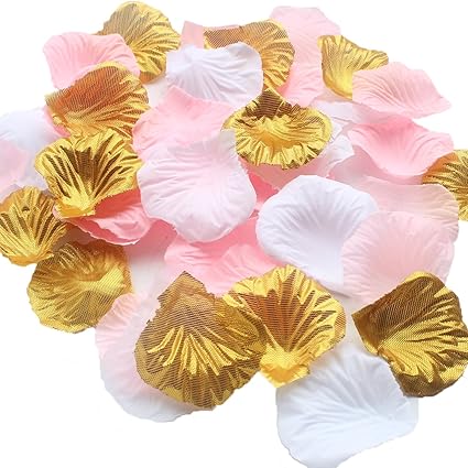Allheartdesires 1200pcs Mixed Pink Gold White Wedding Flower Centerpieces Artificial Flower Table Confetti Scatters Flower Girl Basket Filler Aisle
