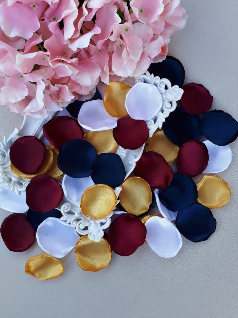 Burgundy Gold White Navy Blue Handmade Rose Petals Burgundy Wedding Romantic Party Decor Elegant Party Supplies Navy Wedding Blue Gold